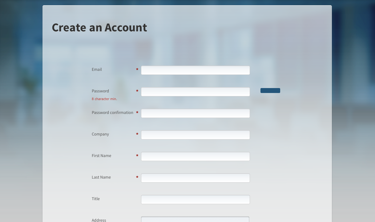 To create a new account click Sign Up in the upper right corner of the page. Fill out the required fields (marked with *) and click Create an Account. In a minute or so an email is sent to the provided address containing a link to verify your email address. Click the verification link and accept the terms of service to activate your ExpressPlay trial account.